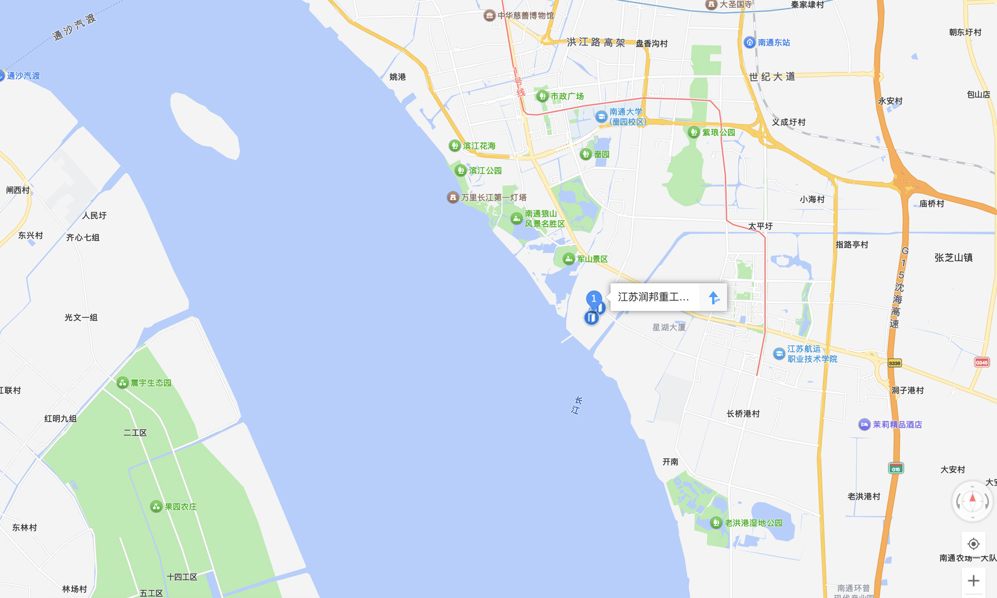 路线1:苏通大桥→沿海高速→沿江高速(南京方向)→南通城区出口→通宁大道→城北大道→长泰路→荣盛路